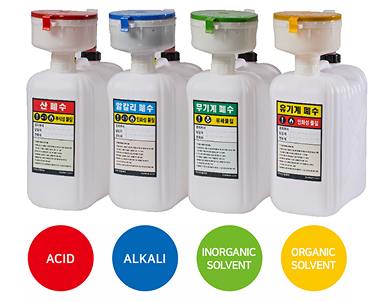 - 폐시약 보관 용기 파손시 외부로 폐액이 유출되지 않음.