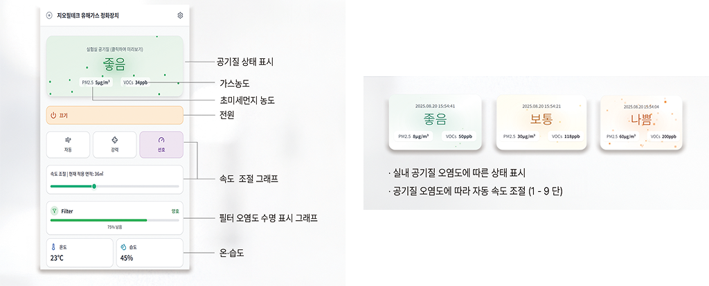 | 청정도표시 | 미세먼지 농도 / VOCs 농도 | 미세먼지 농도 / VOCs 농도 |