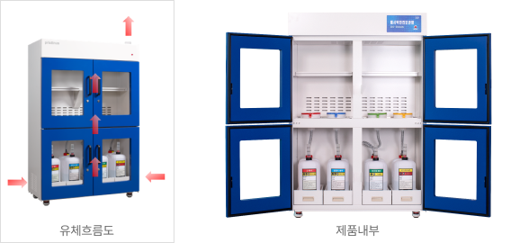 - 시약장 내부에 장착된 송풍기를 이용하여 유해가스를 실외로 배출